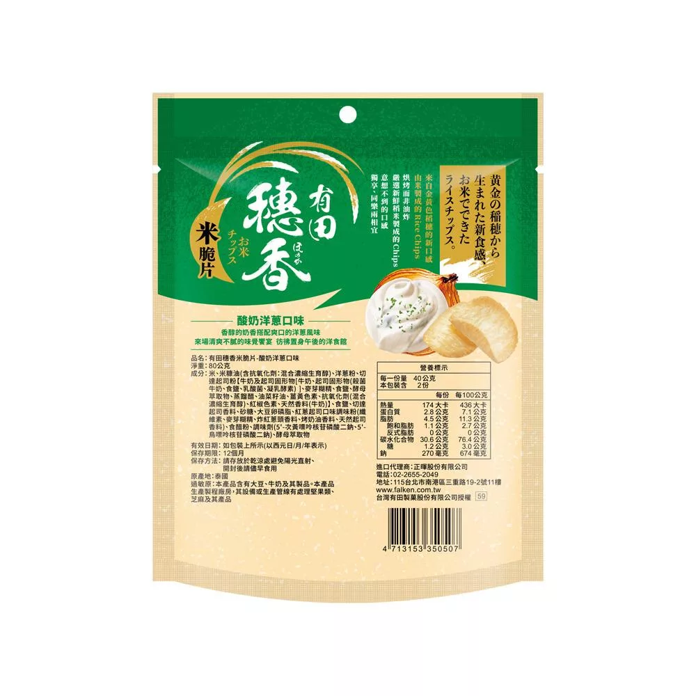 有田製菓】穗香米脆片-酸奶洋蔥口味(80g)