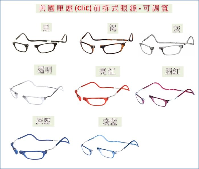 ◆ 美國加州CliC品牌 獲Vision Choice Award大獎 ◆ 鼻樑兩側鑲有吸鐵 可從該處打開鏡架 ◆ 可調式鏡架 革命性設計 ◆ 可調寬:寬度可調整 配戴更舒適