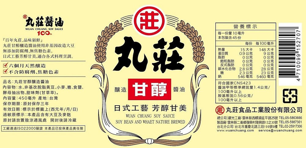 .丸莊甘醇釀造醬油使用非基因改造大豆
