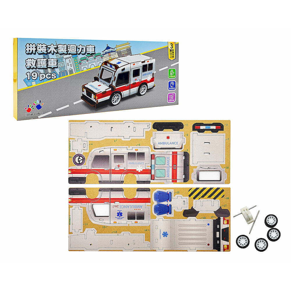 樂彩森林】拼裝木製迴力車-救護車(1入)