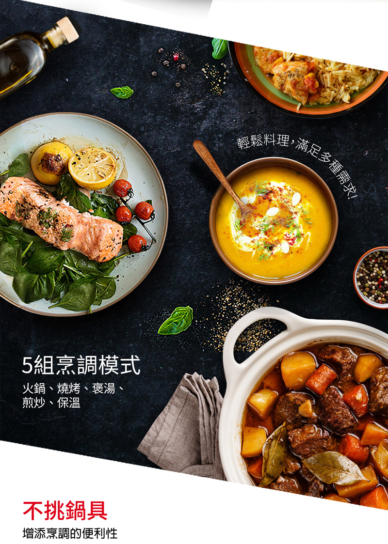 2.5組烹調模式:火鍋、燒烤、褒粥、煎炒、煮水