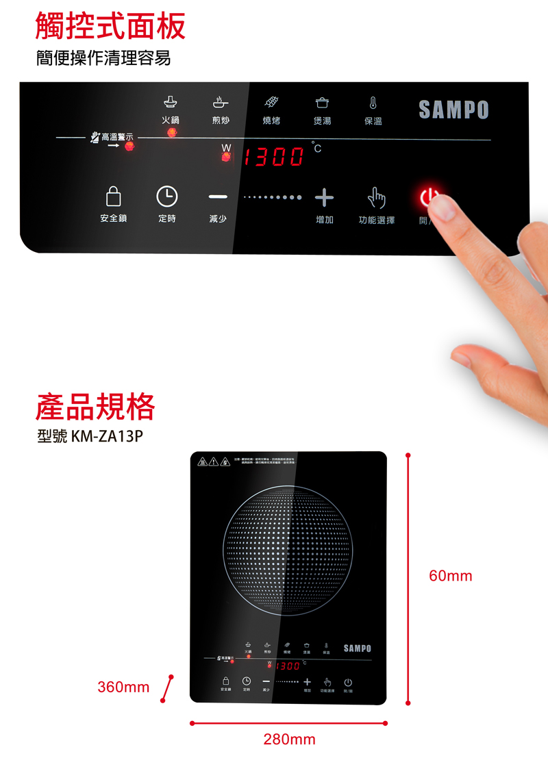 SAMPO聲寶微電腦觸控不挑鍋黑晶電陶爐 KM-ZA13P