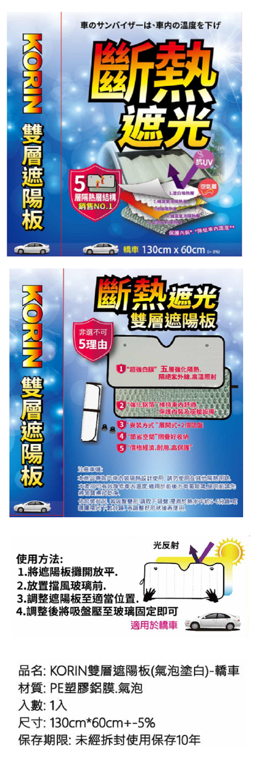 KORIN】雙層遮陽板(氣泡塗白)-轎車((1入))