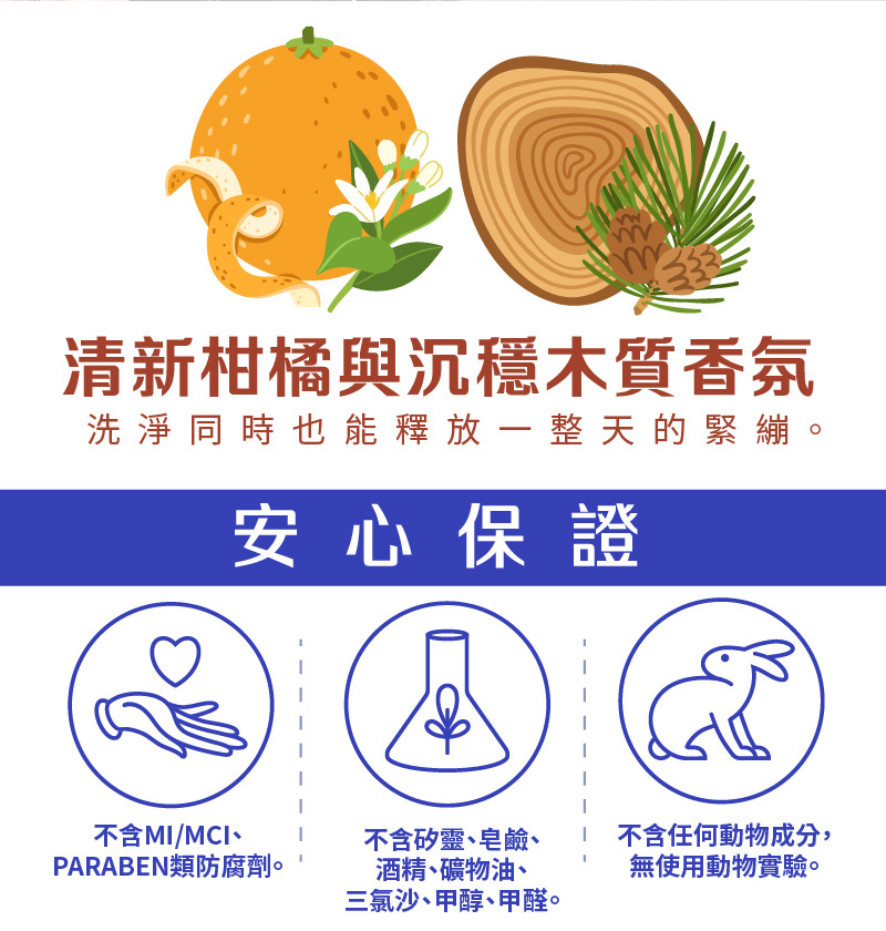 全成分:WATER純水、SODIUM LAURETH SULFATE界面活性劑、COCAMIDOPROPYL BETAINE界面活性劑、DIMETHYL LAURAMIDE/MYRISTAMIDE 植物來源保濕油脂、PHENOXYETHANOL保存劑、FRAGRANCE香精、SODIUM CHLORIDE氯化鈉、SAPINDUS MUKUROSSI PEEL EXTRACT無患子萃取液、GLYCERIN甘油、POLYQUATERNIUM-7 陽離子聚合物、ISOCETETH-20助乳化劑、CAFFEINE 咖啡因、TETRASODIUM EDTA螯合劑、CAPRYLYL GLYCOL保存劑、CITRIC ACID 檸檬酸、MELALEUCA QUINQUENERVIA OIL綠花白千層精油、ROSMARINUS OFFICINALIS LEAF OIL迷迭香精油、CUPRESSUS FUNEBRIS WOOD OIL雪松精油、LAVANDULA ANGUSTIFOLIA OIL薰衣草精油、TORREYA NUCIFERA EXTRACT日本榧樹萃取、JUGLANS REGIA (WALNUT) SEED EXTRACT胡桃萃取、THUJA ORIENTALIS EXTRACT側柏萃取、BUTYLENE GLYCOL、SODIUM BENZOATE覆型劑(來自萃取、陽離子)、PROPYLENE GLYCOL覆型劑(來自助乳化劑)