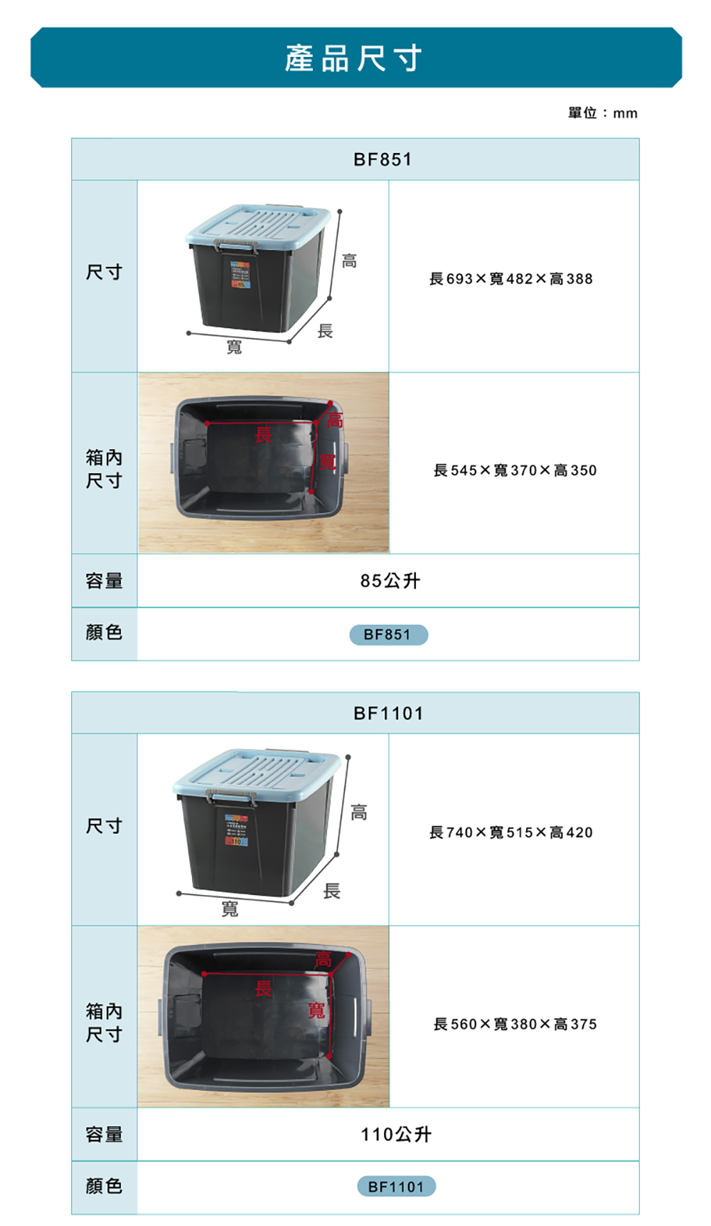 深色外型,不怕髒汙,扣環式箱蓋設計,緊扣防塵,底部附6顆滑輪(45L整理箱:4顆滑輪),搬運移動更便利,箱面凹槽設計,便於穩固堆疊放置,堆收設計:可將箱蓋拿起作堆疊收納,節省空間,精選莫蘭迪色系,沉穩優雅,易搭出質感家居
