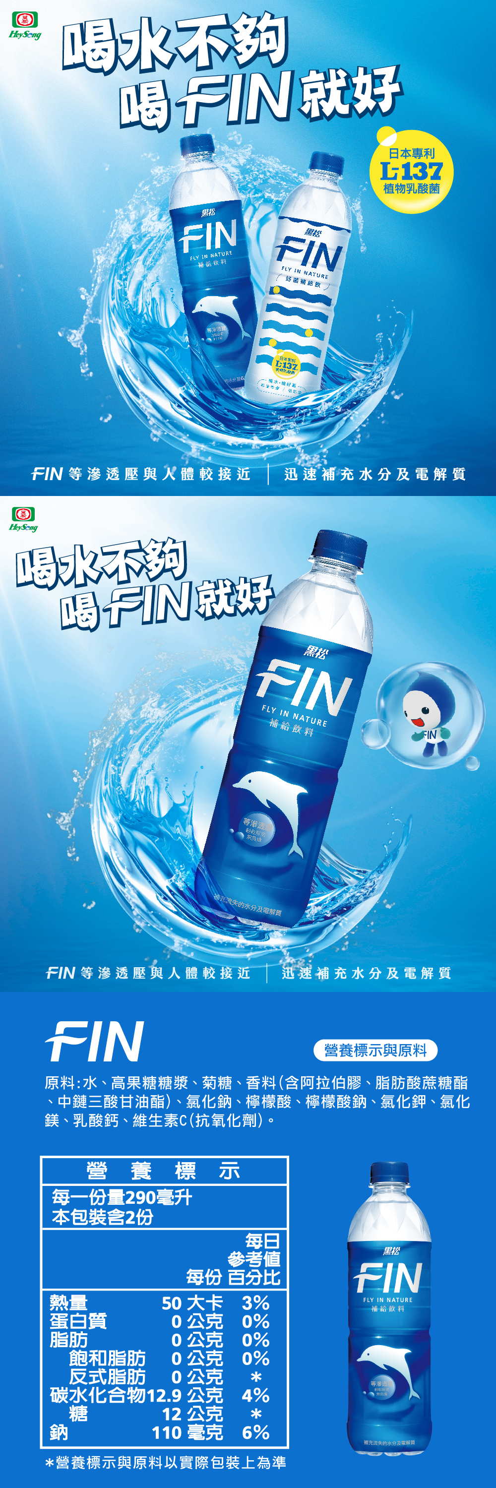 商品品名:【黑松】FIN補給飲料
