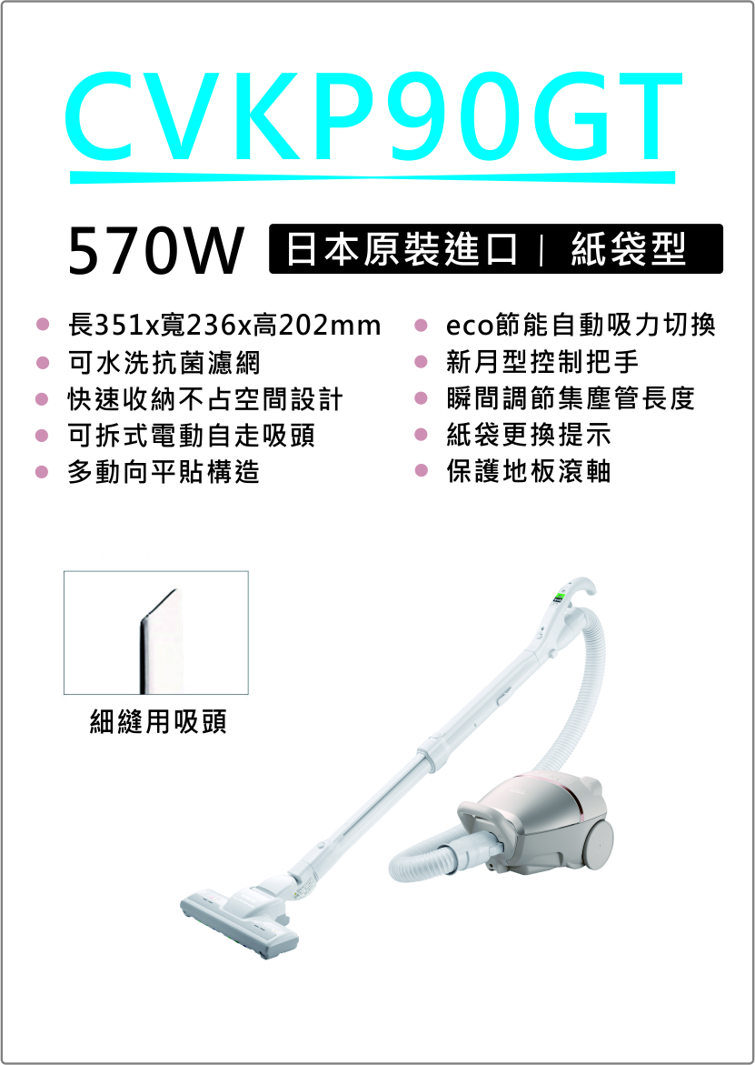 商品品名:【HITACHI 日立】日製570W大吸力吸塵器(CVKP90GT)-194-CVKP90GT