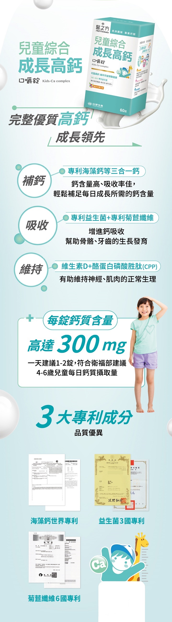 品名 台塑生醫 醫之方兒童綜合成長高鈣口嚼錠 產地 台灣