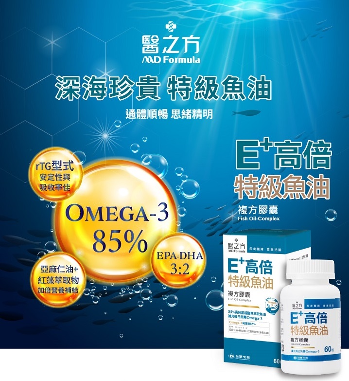 品名 台塑生醫 醫之方E+高倍特級魚油 產地 台灣