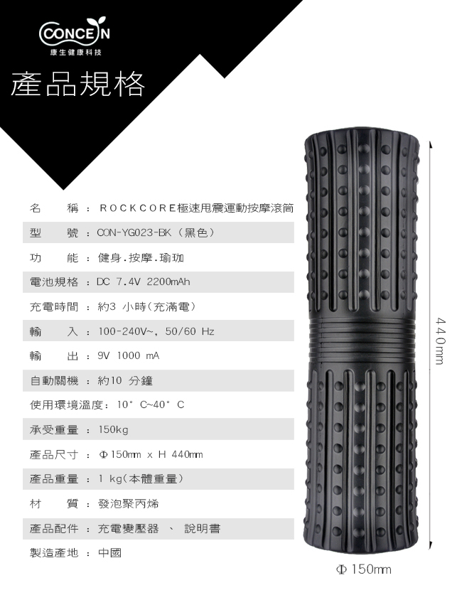 商品品名:【康生】長滾筒極速甩震運動按摩-黑