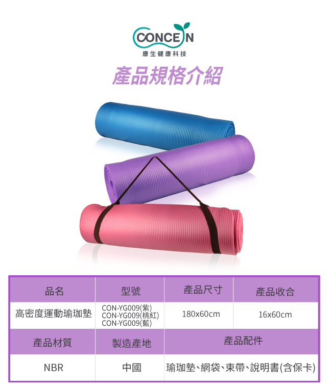 商品品名:【康生】高密度運動瑜珈墊-紫