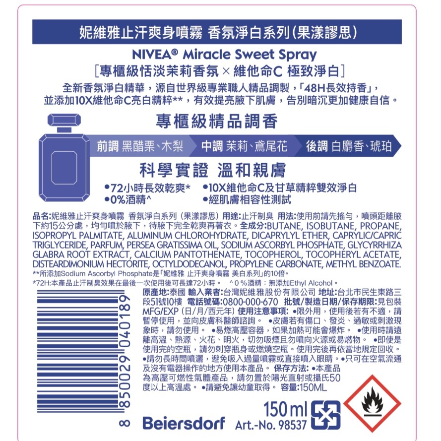 全新香氛淨白精華,源自世界級專業職人精品調製,「48H長效持香」,並添加10X維他命C亮白精粹**,有效提亮腋下肌膚,告別暗沉更加健康自信。