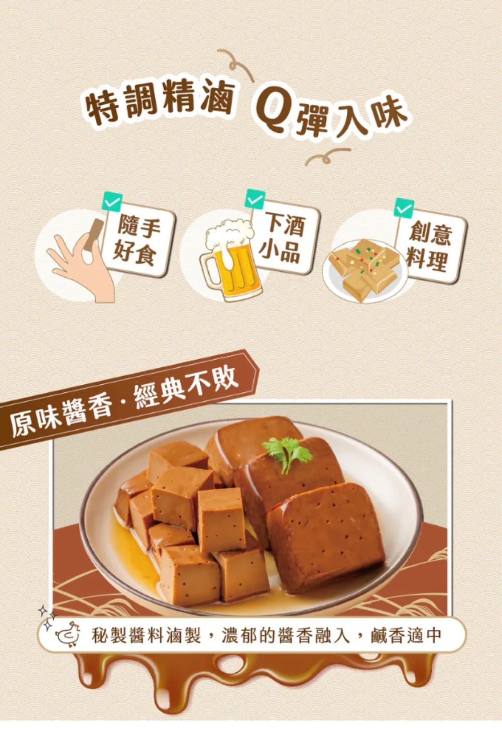 本產品使用天然食材雞蛋直接滷煮,產品上有白霧點為雞蛋蛋白凝結而成或顏色不均皆屬於正常現象,請安心食用