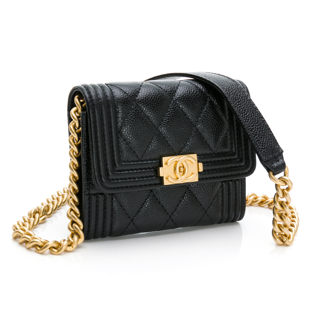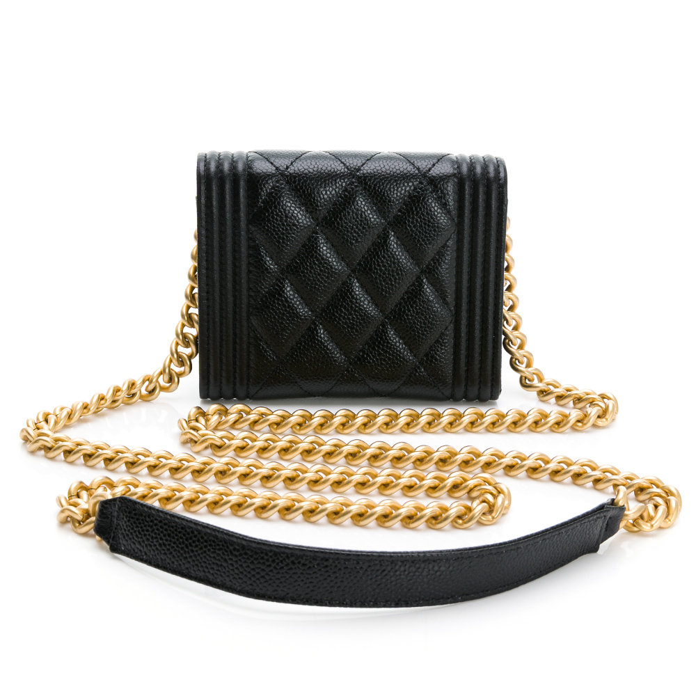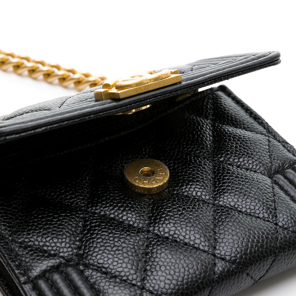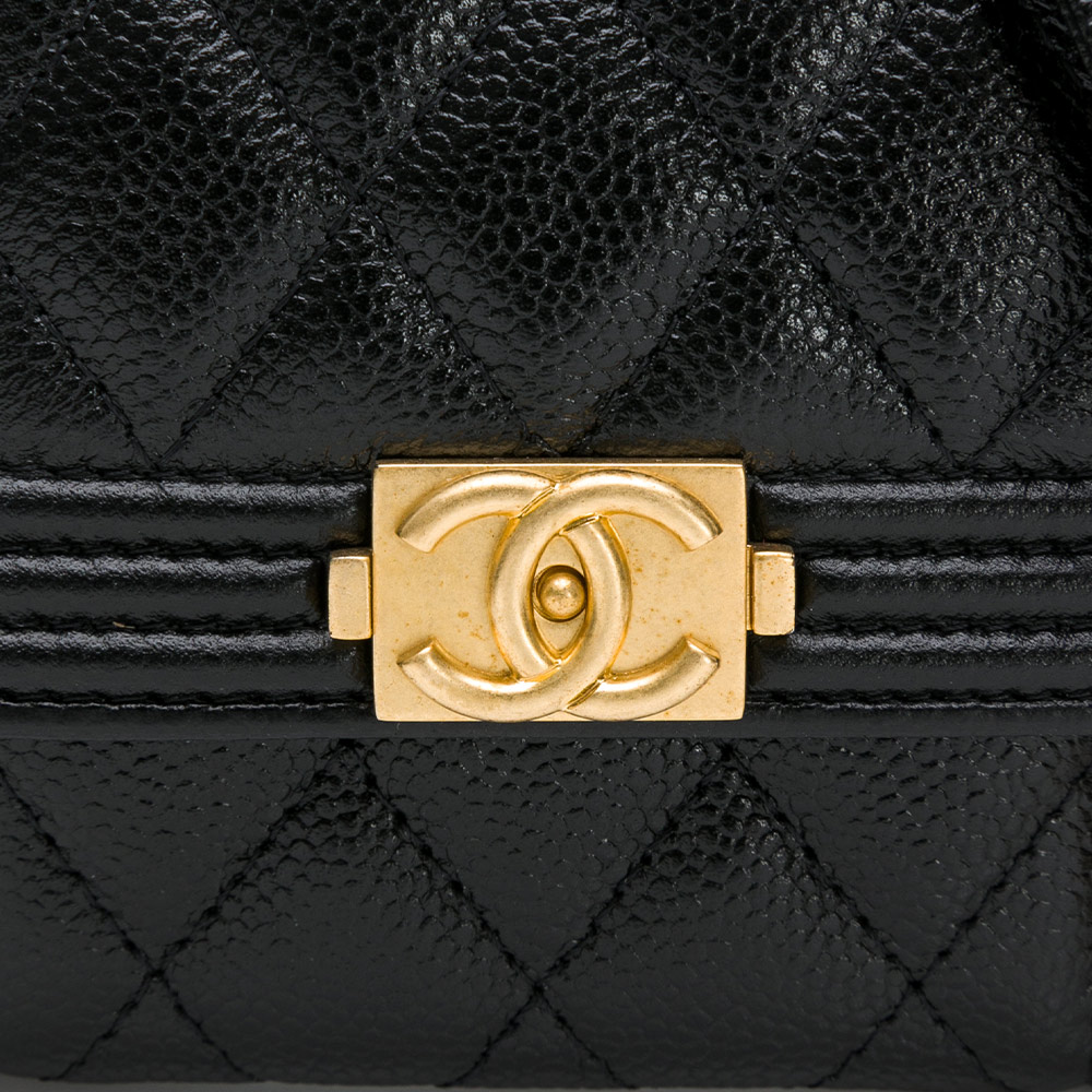 CHANEL 香奈兒】BOY系列菱格荔枝紋仿舊金鍊雙層迷你斜背包(黑色)