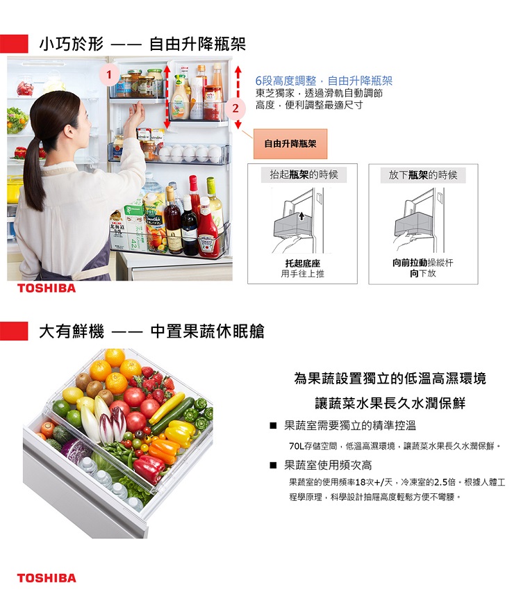 ●門側自由調整瓶架 ●中置蔬果休眠倉 ●便利清潔口 ●-18度C無霜冷凍科技 ●Ag+銀離子低溫觸媒 ●60分鐘快速製冰/速冷冰鮮盒 ●一鍵智能ECO