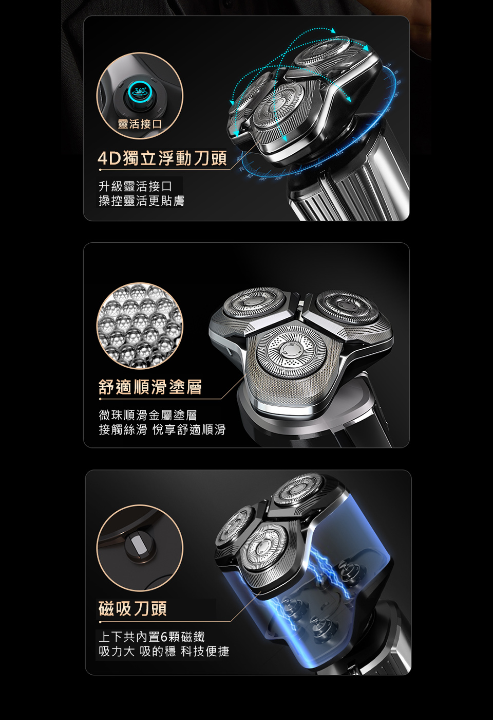 4D獨立浮動刀頭,全向360度操作靈活更貼膚