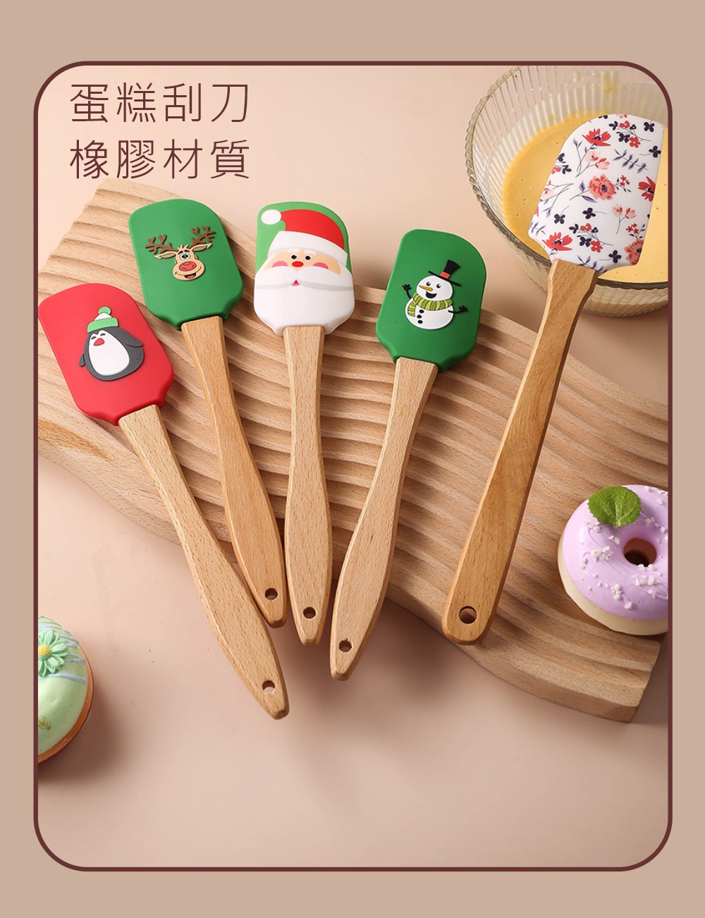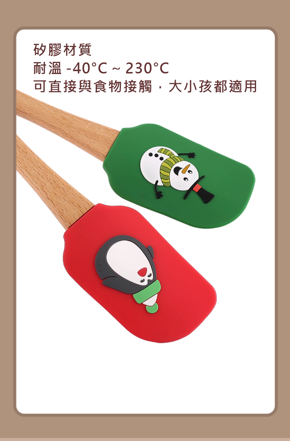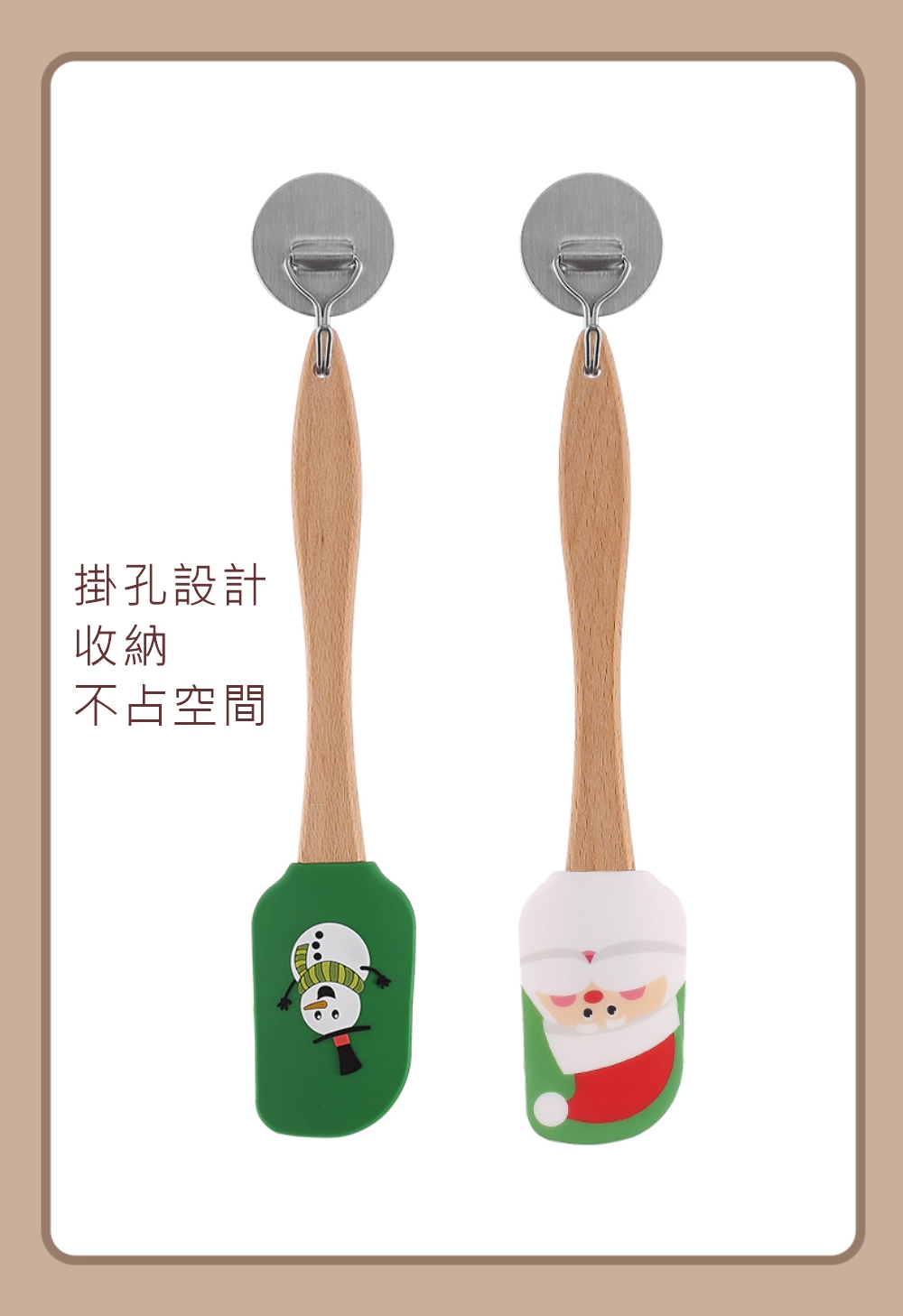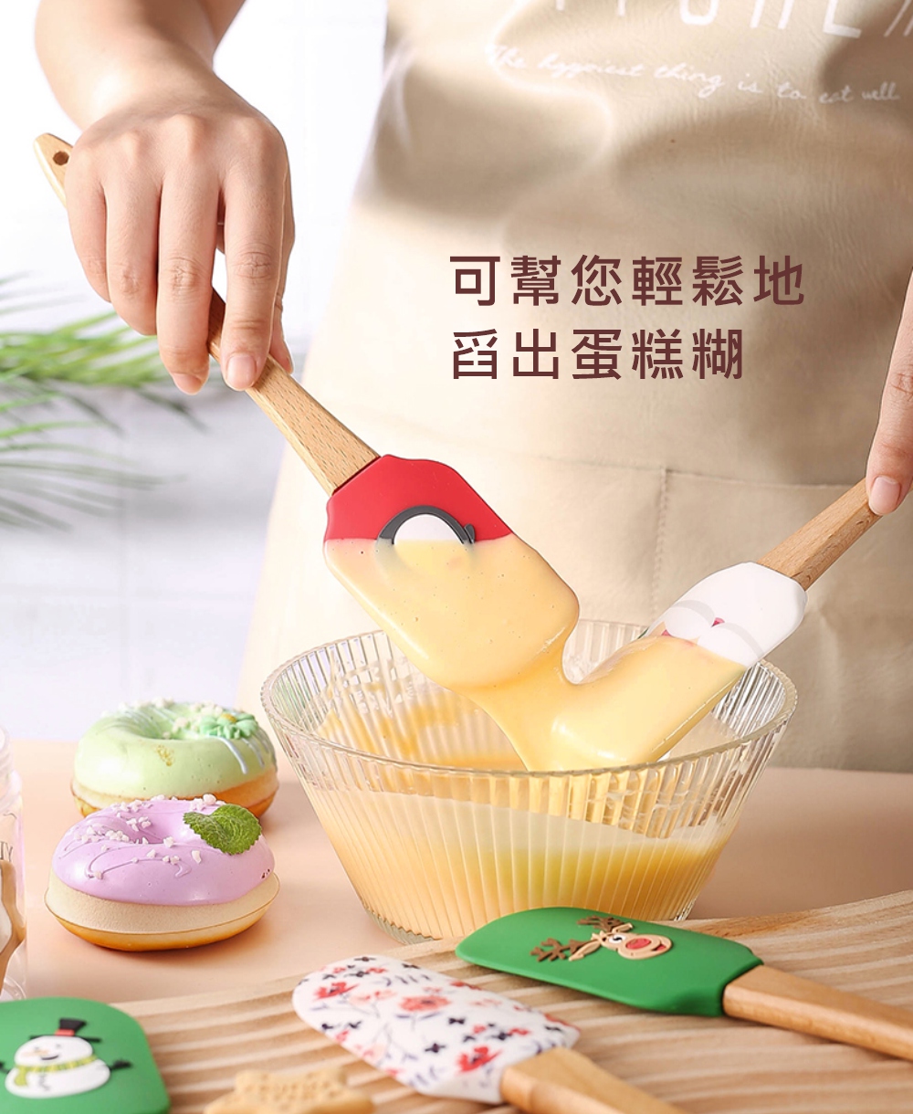 CASE MIE】生活美學家-聖誕老人木柄矽膠刮刀-大(人體工學木質手柄、掛孔設計收納不佔空間、矽膠材質)