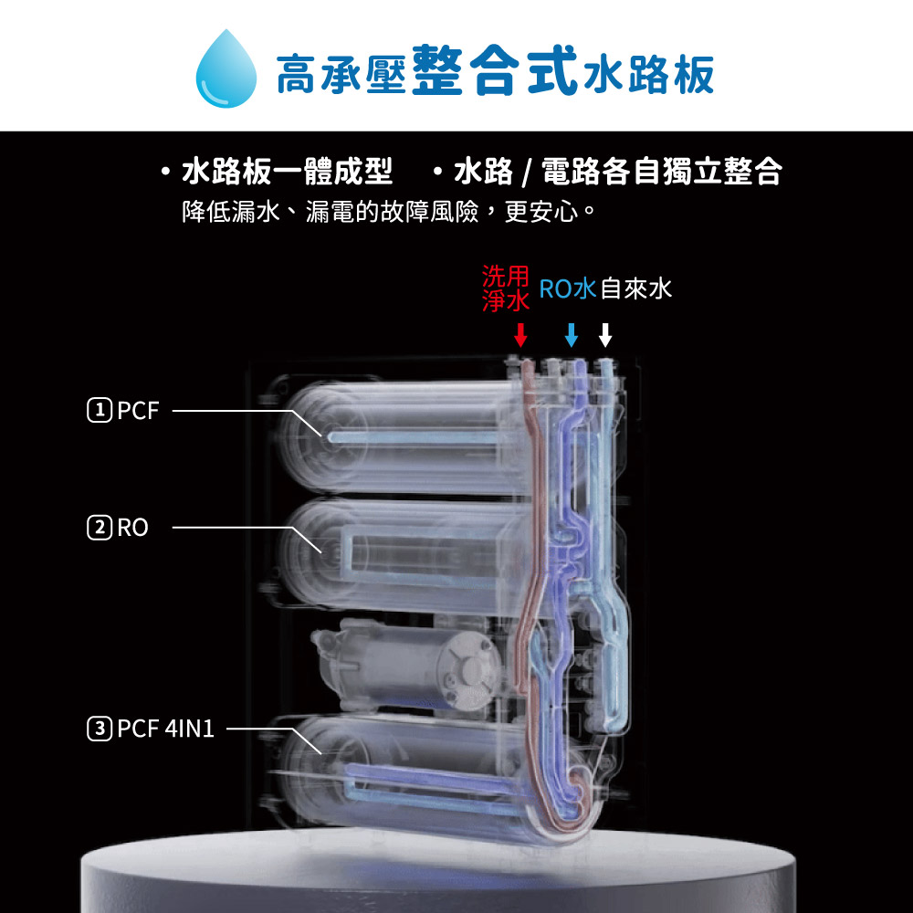 2.高承壓整合式水路板→減少漏水疑慮,更安全