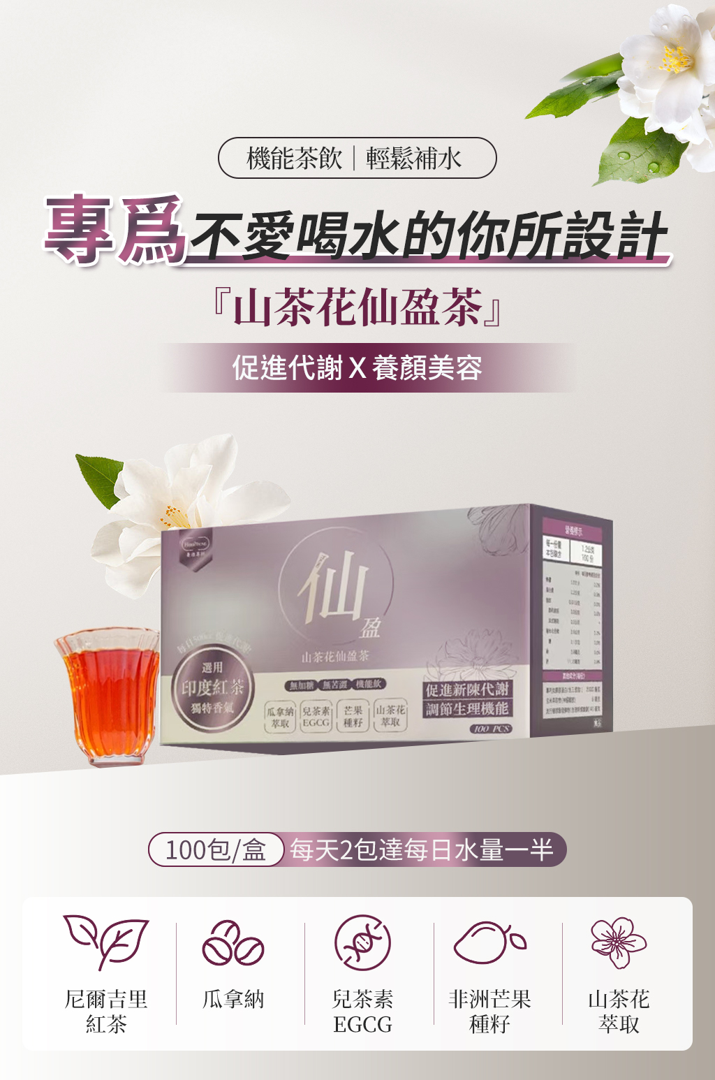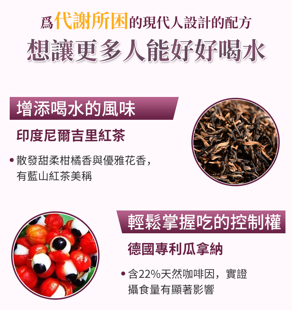 成分:紅茶粉、非洲芒果種子、磷酸鈣、瓜拿納萃取物、山茶花萃取物、EGCG