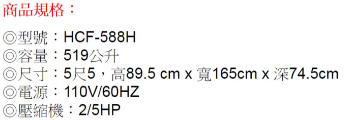 Haier 海爾 5尺5 密閉臥式冷凍櫃 HCF-588H