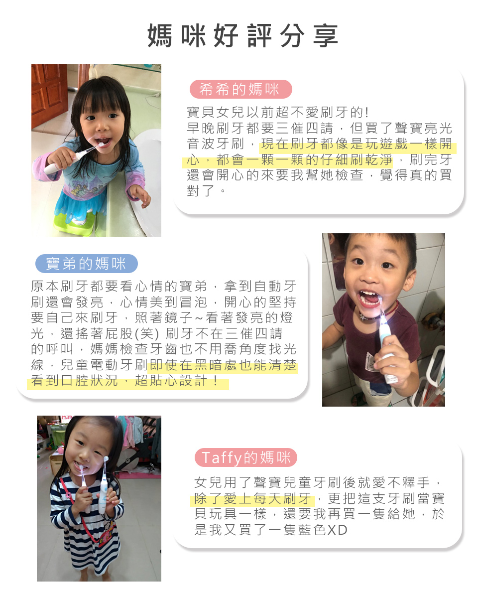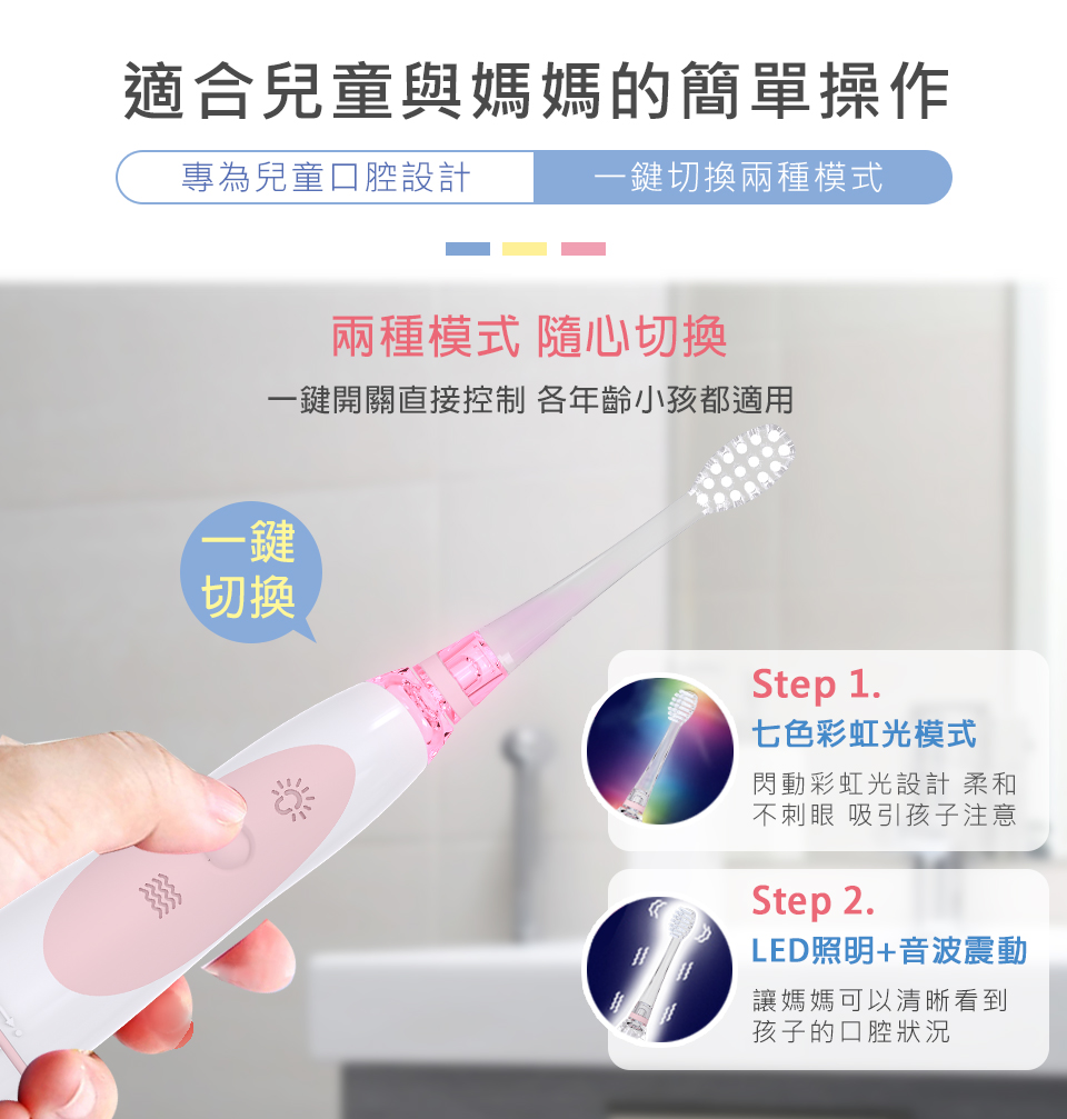 1.型號:聲寶兒童亮光音波震動牙刷 TB-Z2507CL