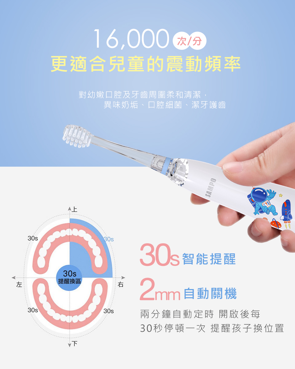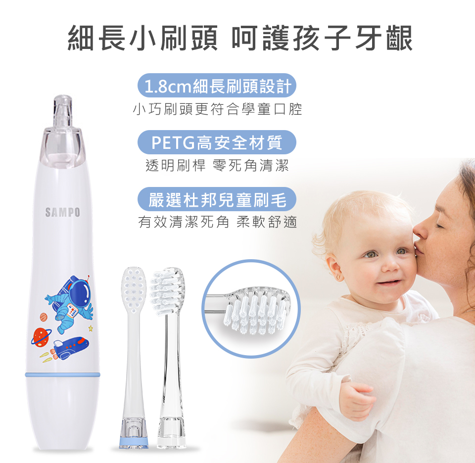1. 【SAMPO聲寶】兒童彩光音波電動牙刷 TB-Z2507CL (刷頭2入) (兩色任選)