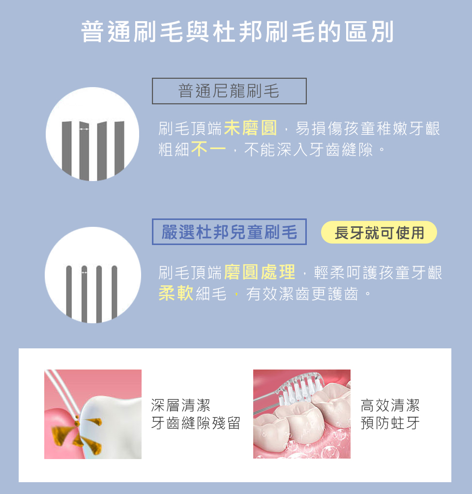 🍭嚴選杜邦兒童刷毛,刷毛頂端磨圓處理