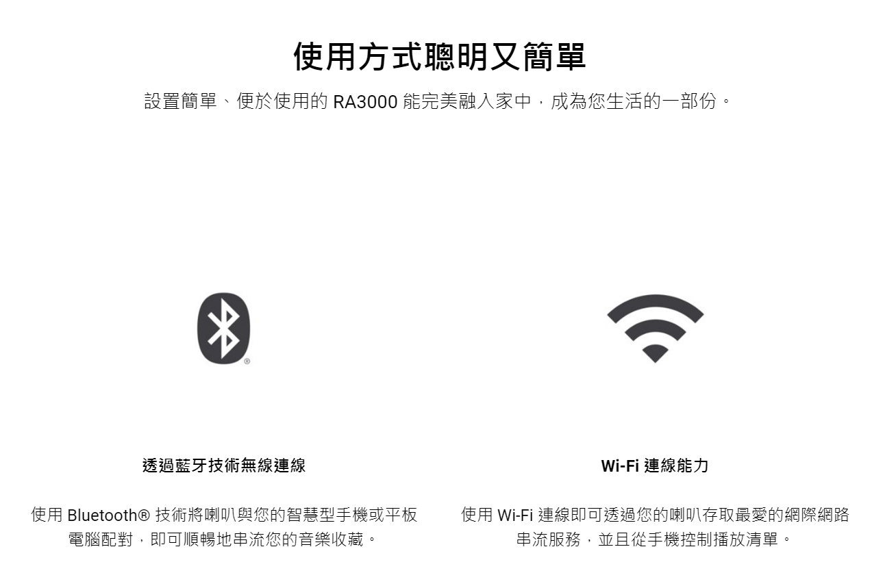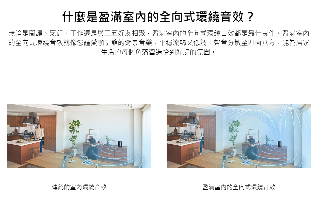 ●盈滿室內的全向式環繞音效 ● 輕鬆完成音效校正 ●透過 Wi-Fi 或藍牙輕鬆串流音樂
