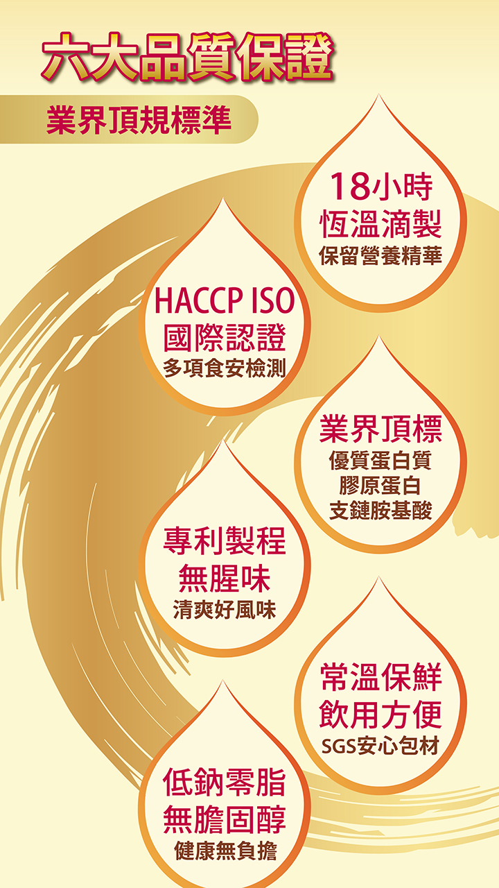 4.內容物成分(如含有豬、牛成分請加註國別):鱸魚淬-金目鱸、料理米酒、香檳茸子實體、滴雞精-全雞、香檳茸子實體