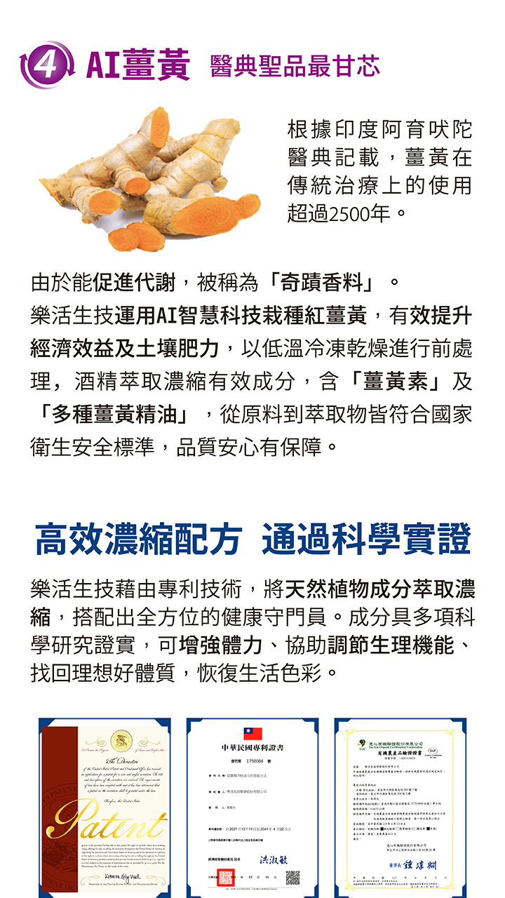 4.內容物成分(如含有豬、牛成分請加註國別):黃子實體萃取物(Phellinus linteus, 固態培養)、香檳茸萃取物(Agaricus blazei Murill, 純淨牧草固態培養)、苧麻萃取物、薑黃萃取物