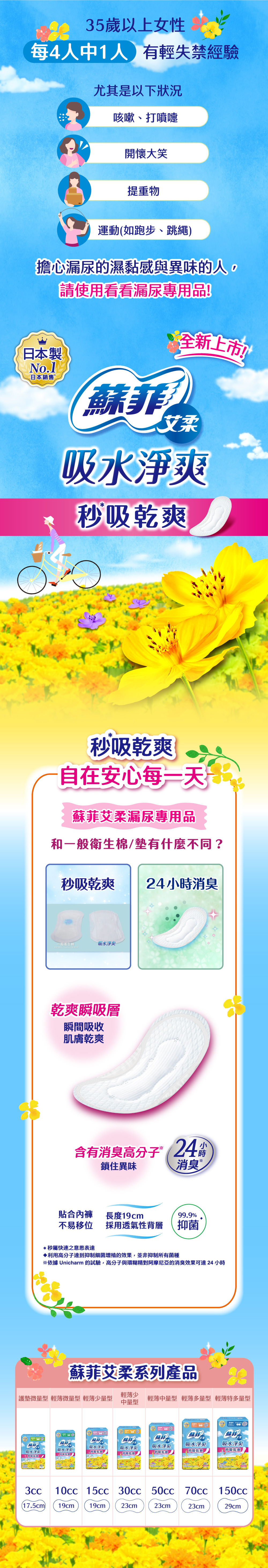 商品品名:【蘇菲】艾柔吸水淨爽漏尿女性用專用護墊-輕薄特多量型