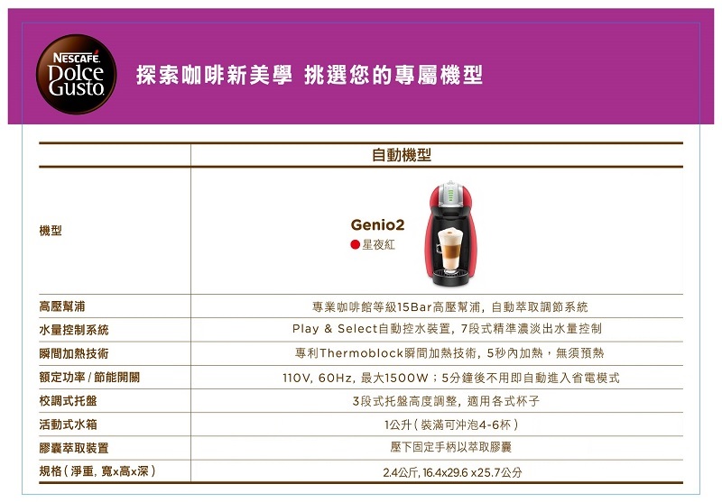 咖啡機型 Genio 2