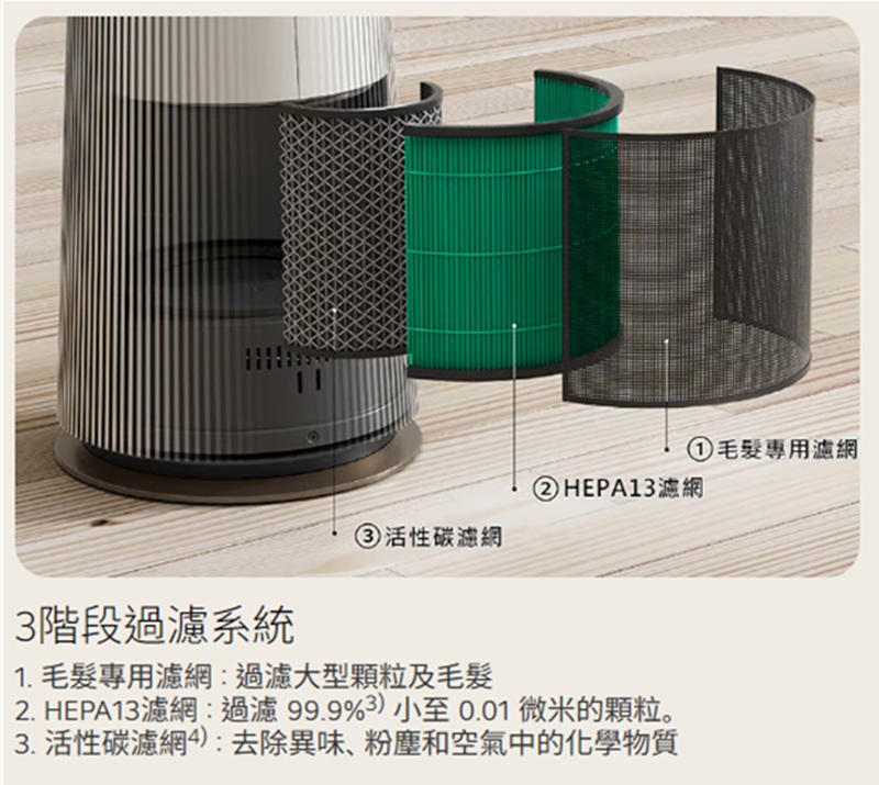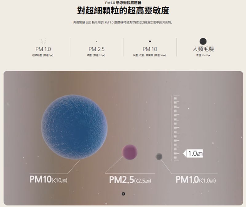 強大的空氣清淨功能:HEPA13濾網、UVnano™ 技術、PM1.0 懸浮微粒感應器