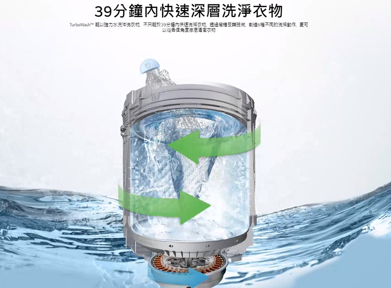 TurboWash™勁速洗 39分鐘即可完成洗衣 省時更節能