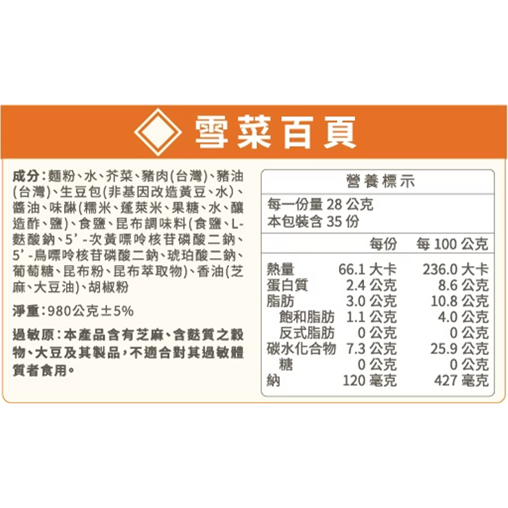 4.內容物成分(如含有豬、牛成分請加註國別):麵粉、水、芥菜、豬肉(台灣)、豬油(台灣)、生豆包(非基改黃豆、水)