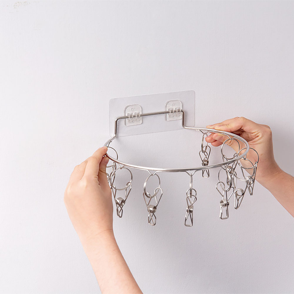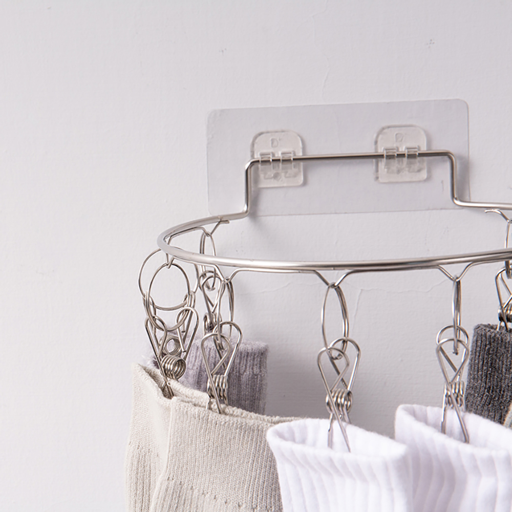 【UdiLife 優的生活大師】墨墨-壁掛式不鏽鋼圓形曬架10夾(約直徑20.5cm)