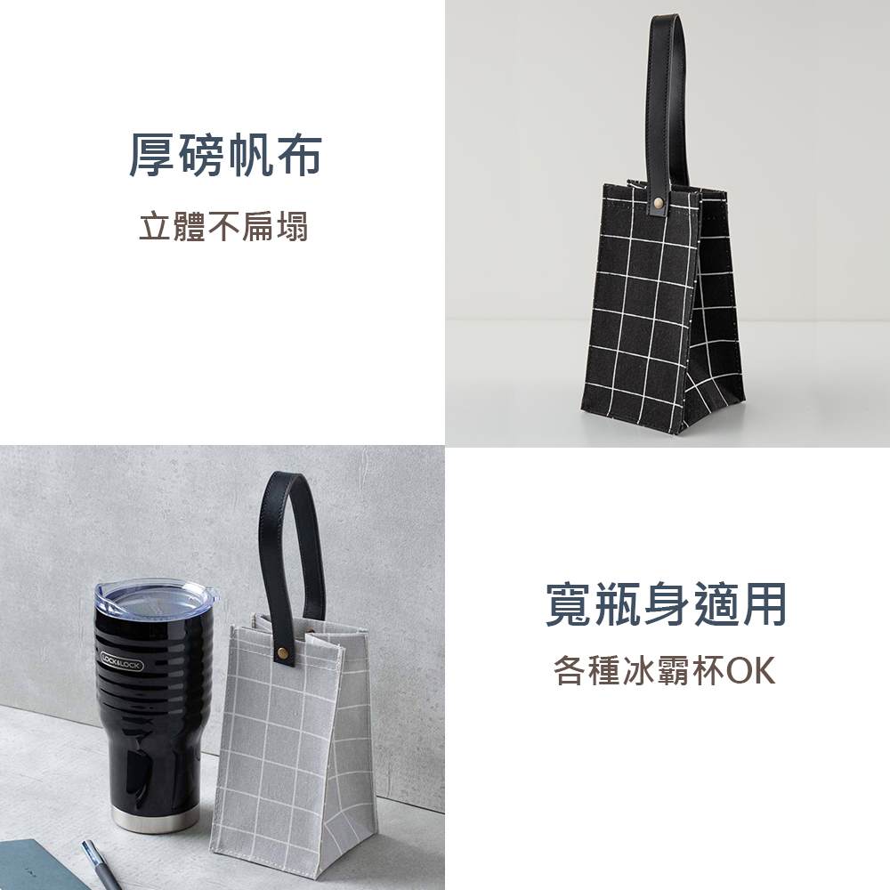 【UdiLife 優的生活大師】平帆系/格紋立體杯袋(袋身/約面寬10×高19×深10cm提把/約總長30cm)
