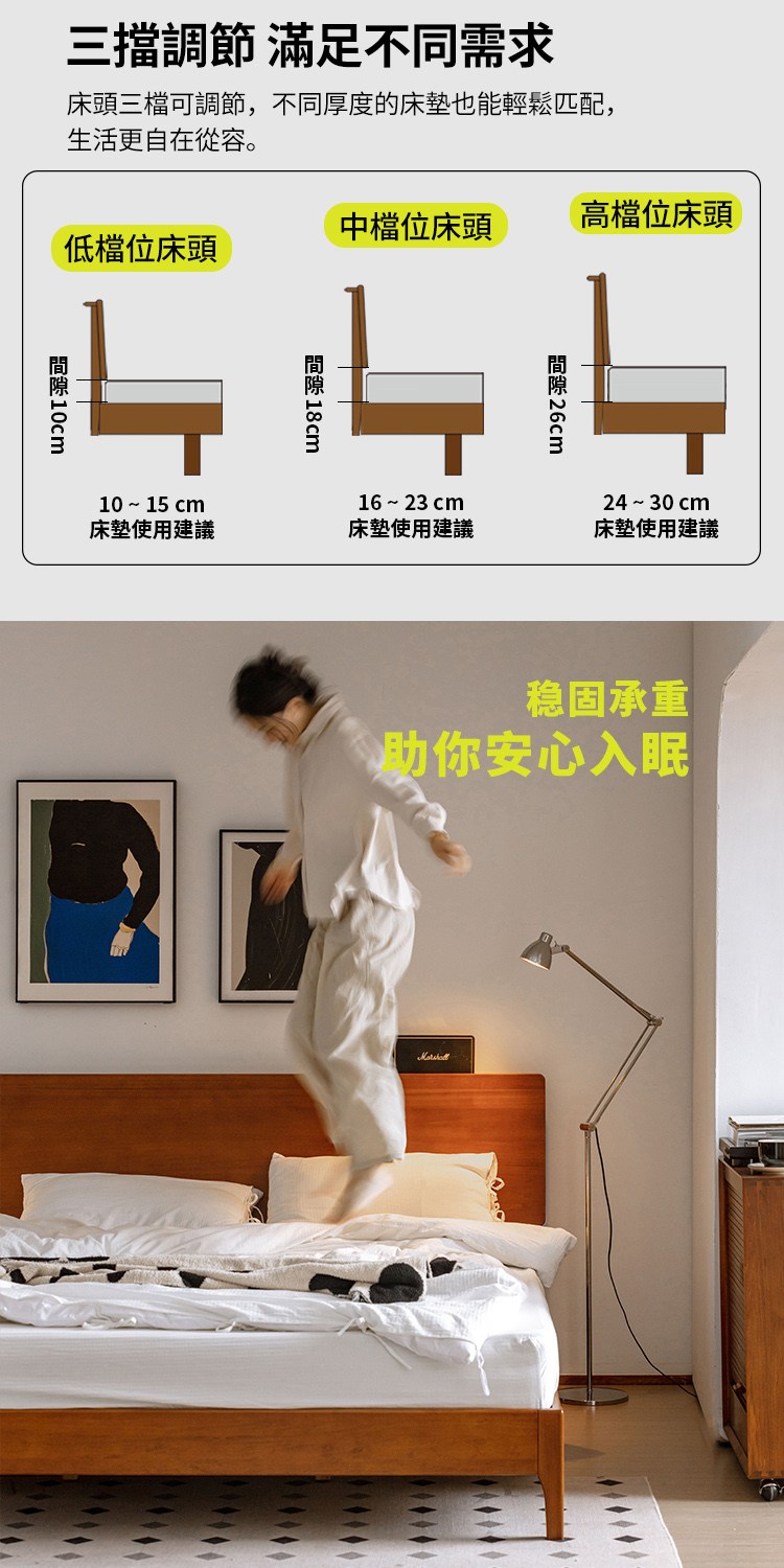 床頭檔位可調 厚實用料 穩固承重 適用床墊尺寸:寬 150 x 長 190 CM 適用床墊厚度:10 ~ 30 CM