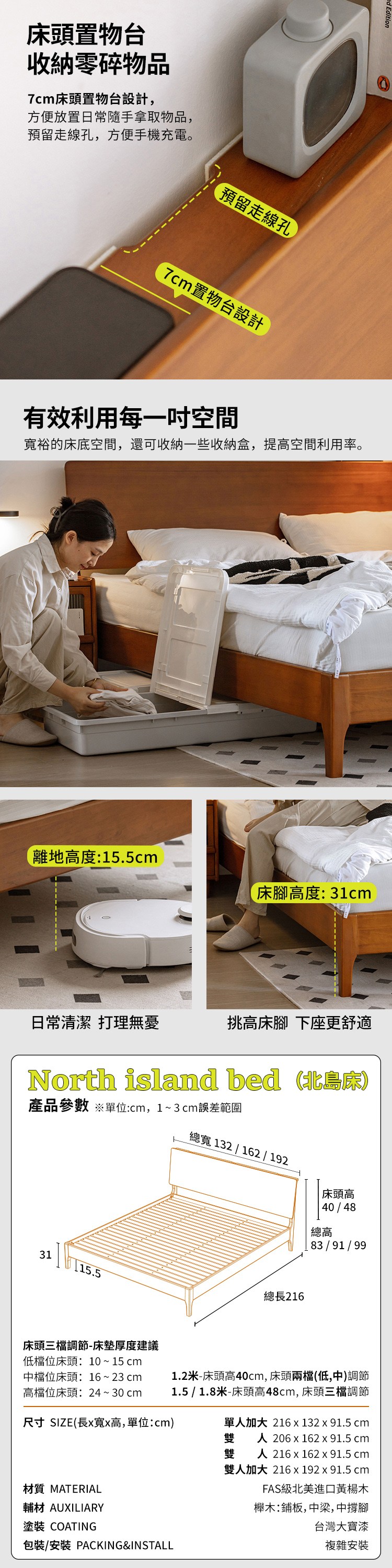 小半家具北島黃楊木雙人150x190床頭可調床架