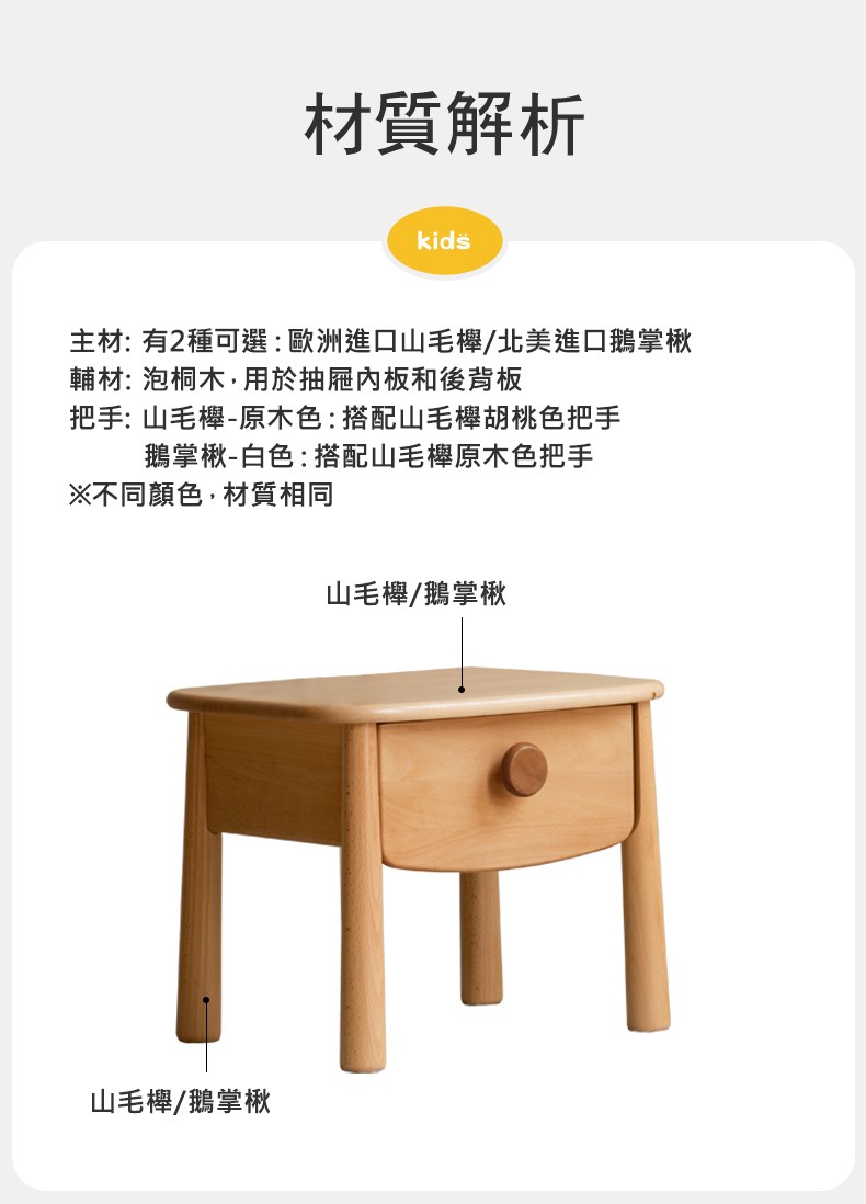 hoi! 好好生活】源氏木語圓潤實木兒童床頭櫃 Y94A08 白色(【hoi】H014371084@103967)