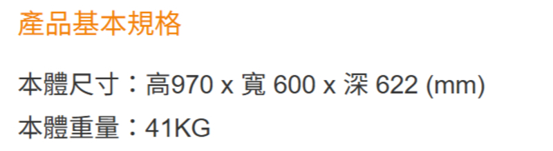 本體規格:高970 x寬600 x深622 (mm)