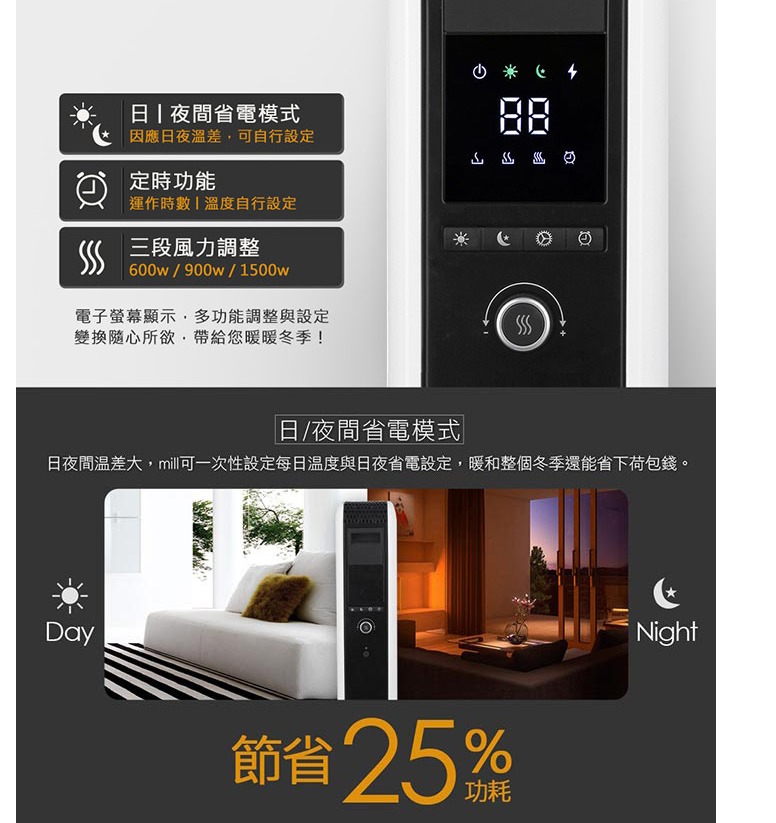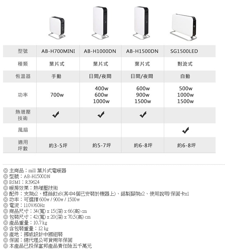 挪威 mill 葉片式電暖器 AB-H1500DN