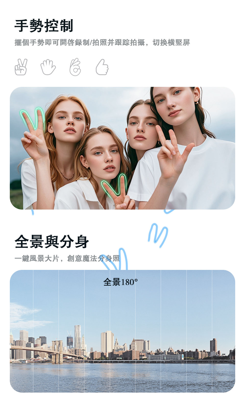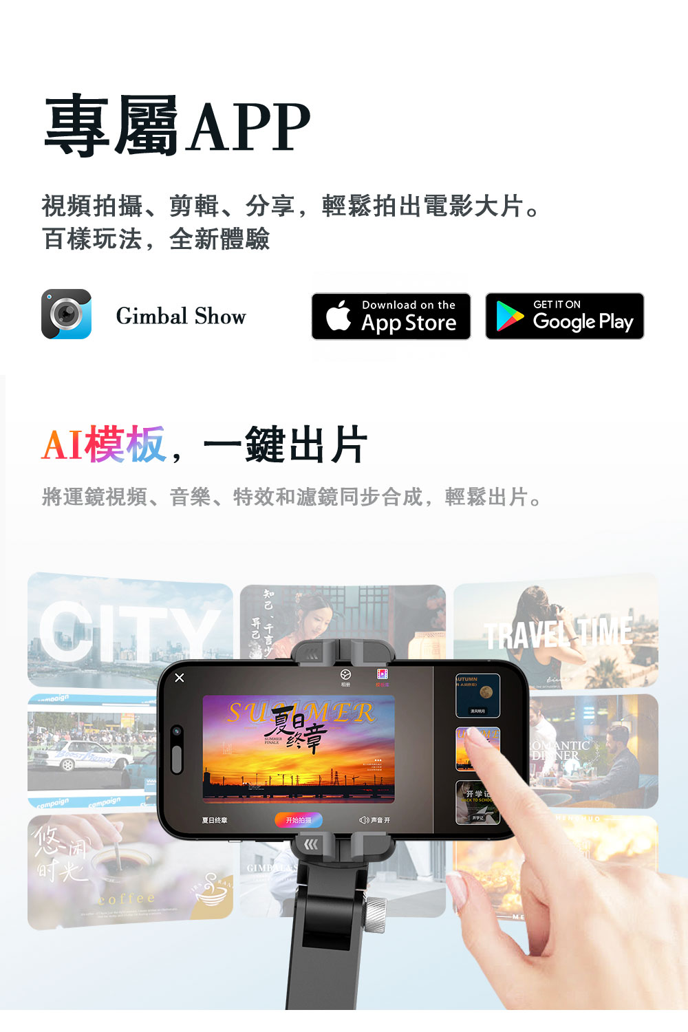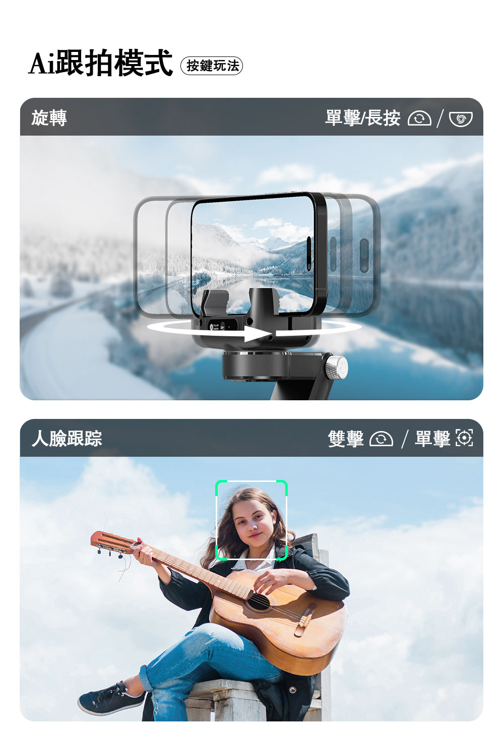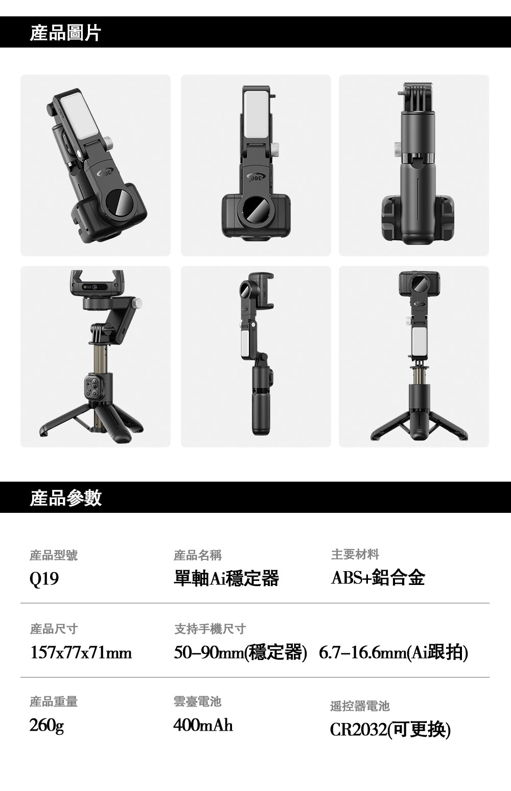 支持手機尺寸:50-90mm(穩定器)6.7-16.6mm(Ai跟拍)