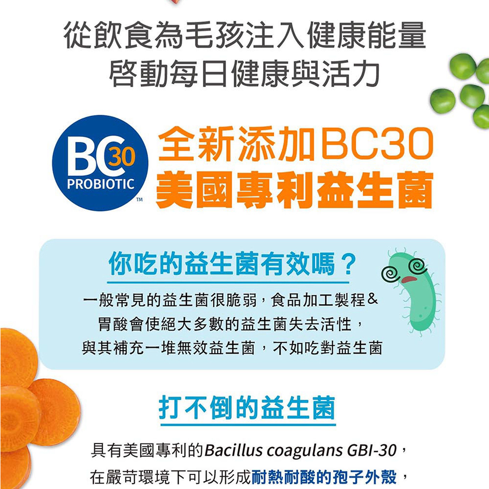 ●0%完全無穀與彩色機能蔬果的天然無負擔配方
