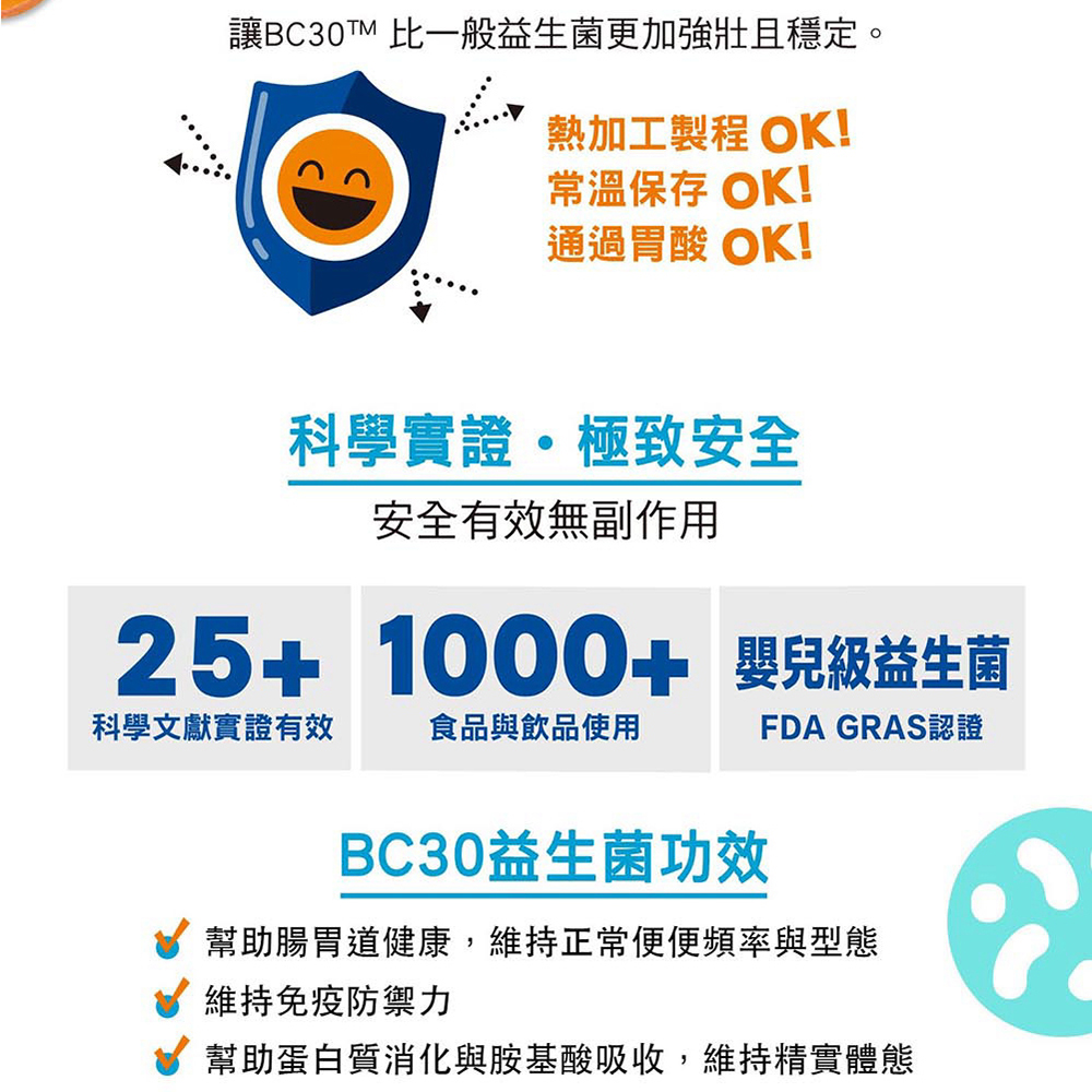 ●BC30™ 美國專利益生菌 - 具有耐熱耐酸防護盾,科學實證,有效守護腸道健康