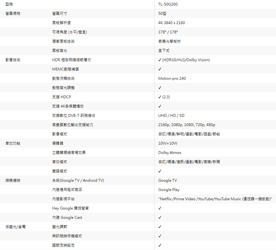 內建影視平台:Netflix /Prime Video /YouTube(遙控器一鍵啟動)