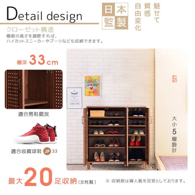 - 鞋櫃內深度達33公分,男鞋或大尺寸女鞋也放得下