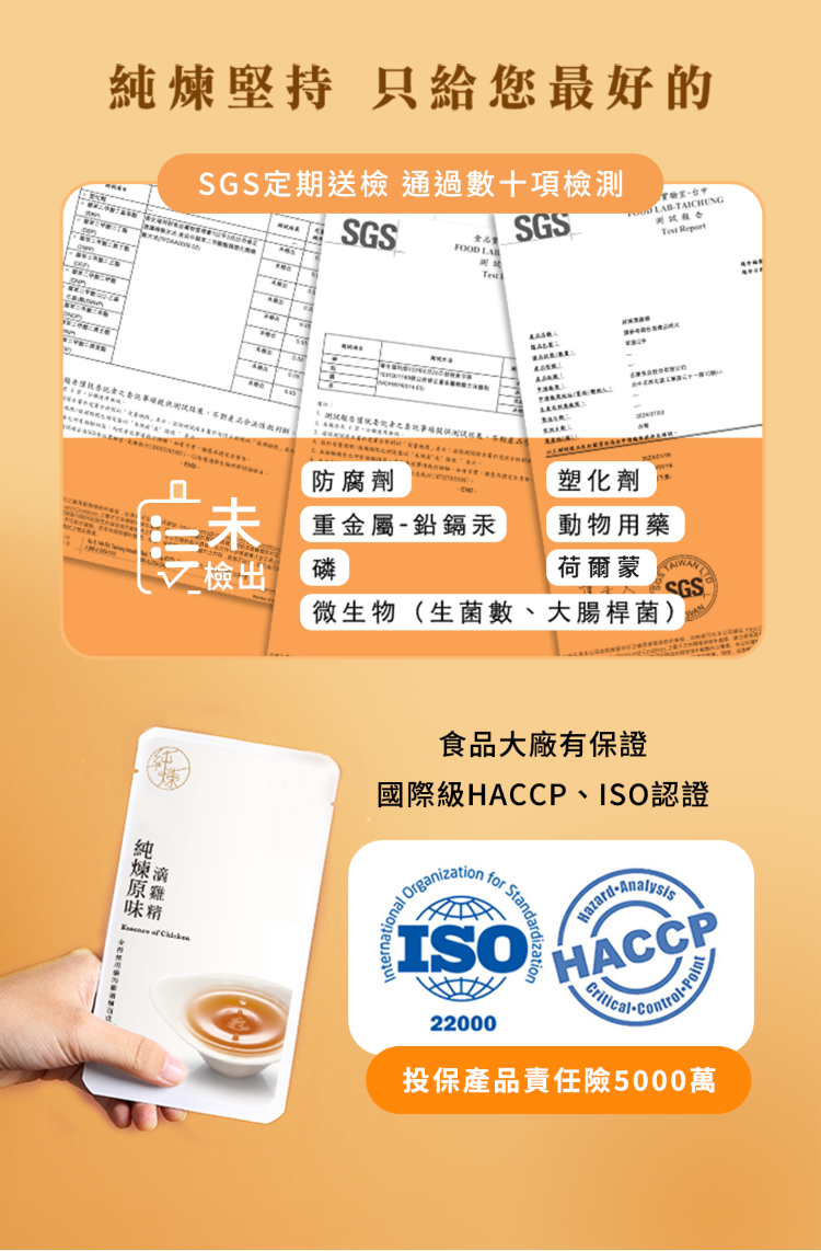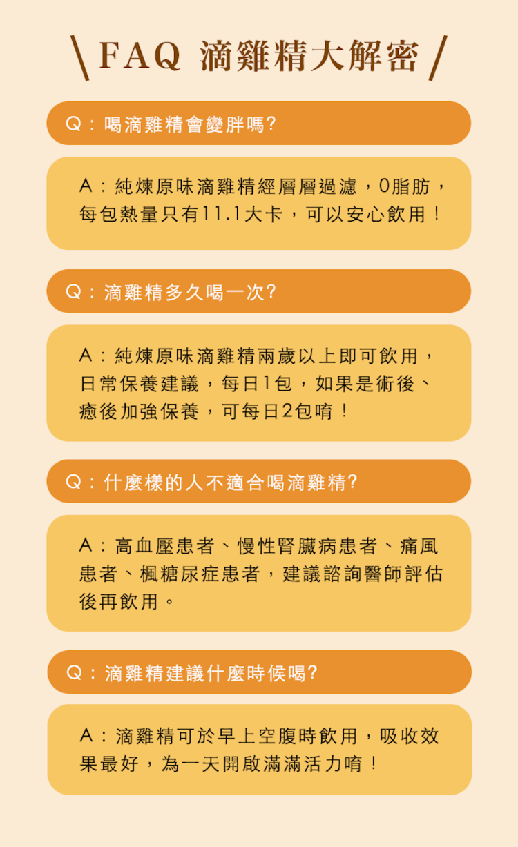 .養殖全程不用藥,成分單純,全家人皆可使用 .古法滴煉萃取滴雞精,全程不加一滴水 .經高溫高壓滅菌,無防腐劑、可常溫保存 .通過HACCP、ISO 認證工廠製造
