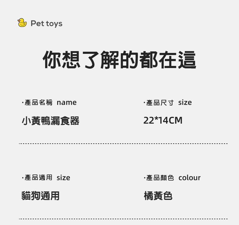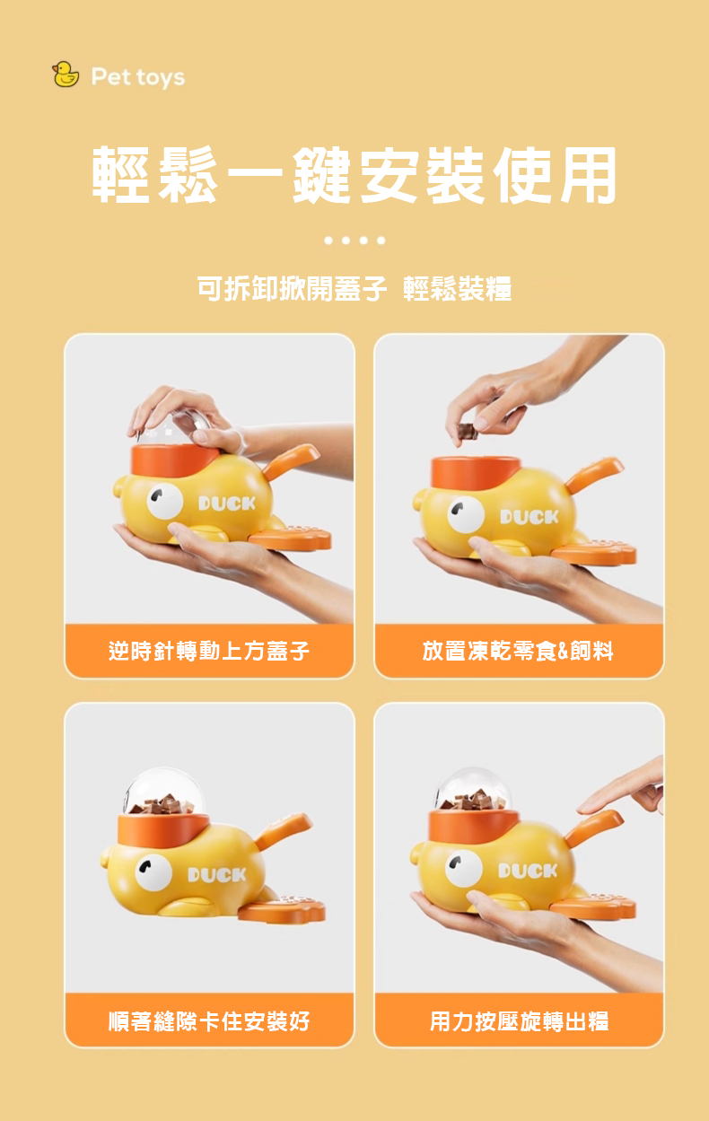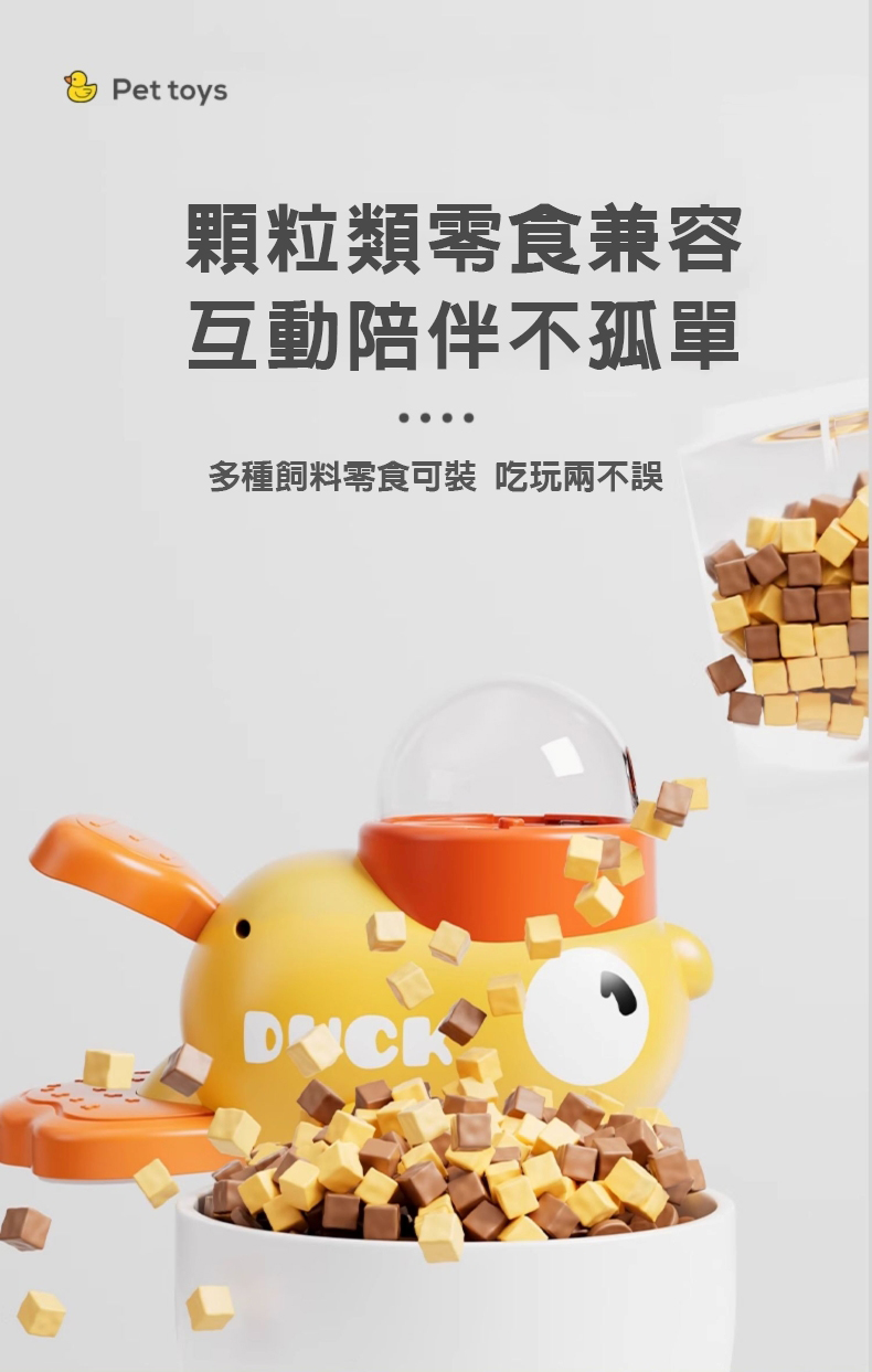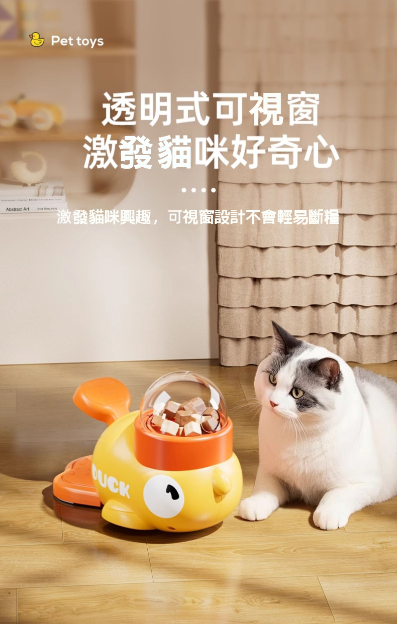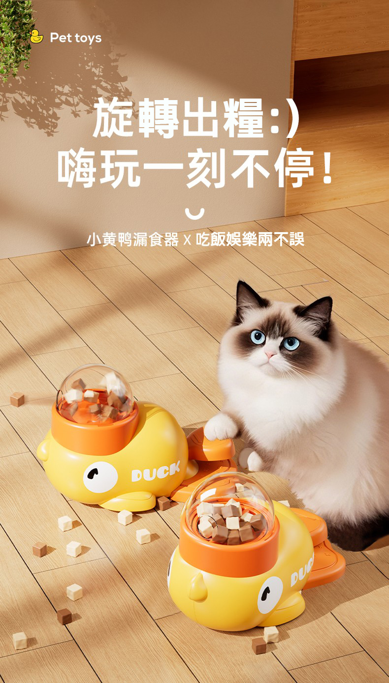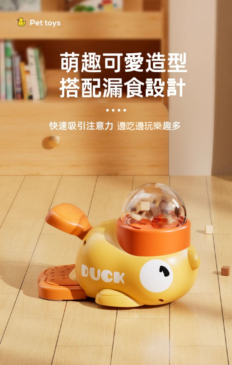可愛小黃鴨造型:鮮豔顏色與造型吸引寵物目光,提升玩耍興趣。