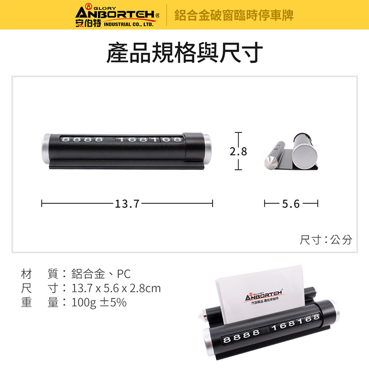 品名:【安伯特】鋁合金破窗臨時停車牌